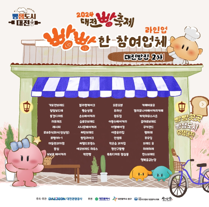 2024 대전 빵축제가 돌아왔습니다. 올해는 역대급 규모의 라이업으로 총 81개 업체가 참여한다고 합니다. 빵잼도시 대전으로 빵지순례를 함께 떠나보아요!